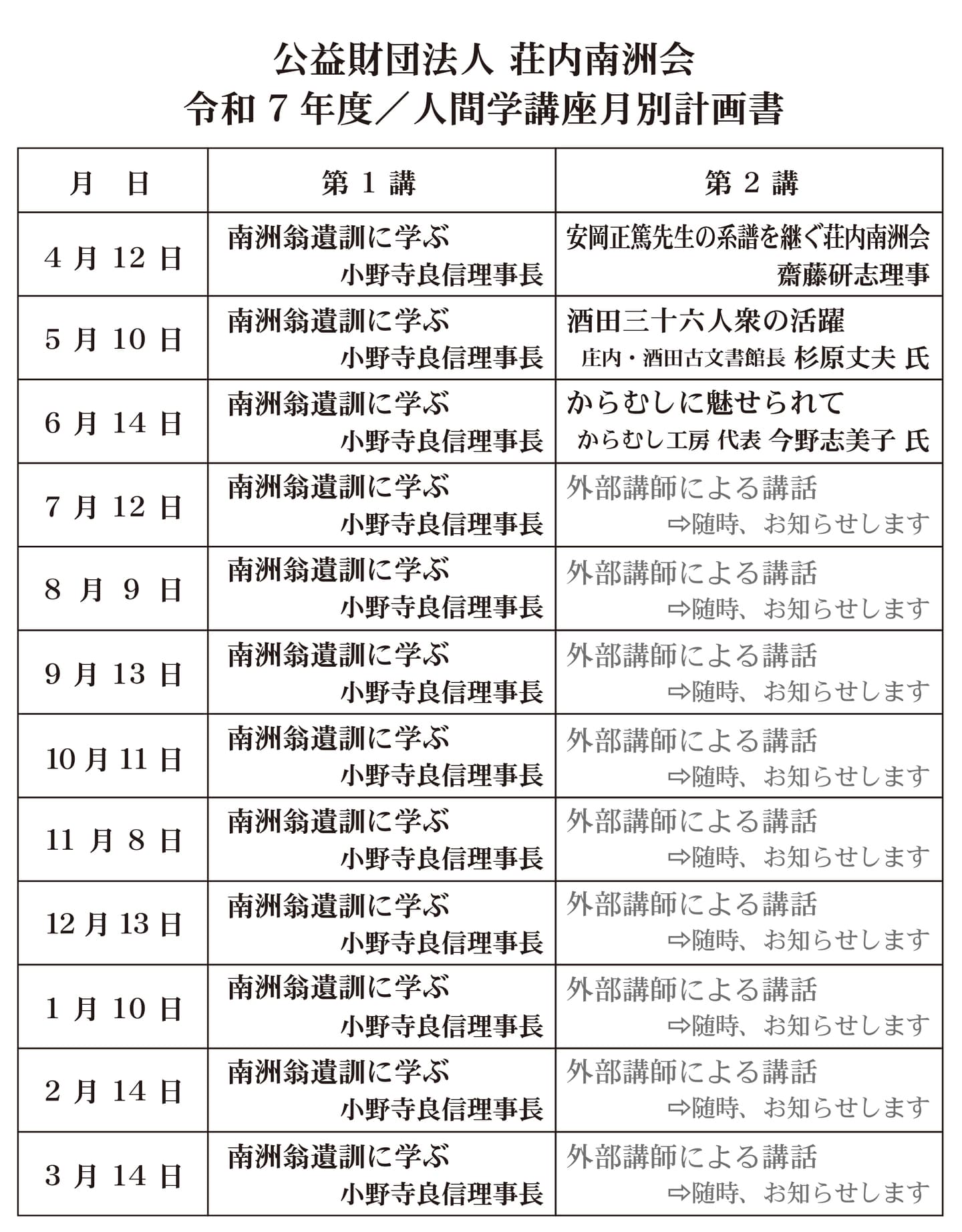 第1講14:00〜15:00/南洲翁遺訓に学ぶ第2講15:00〜16:00/外部講師(有識者・郷土史家等)による歴史、文化等の講話