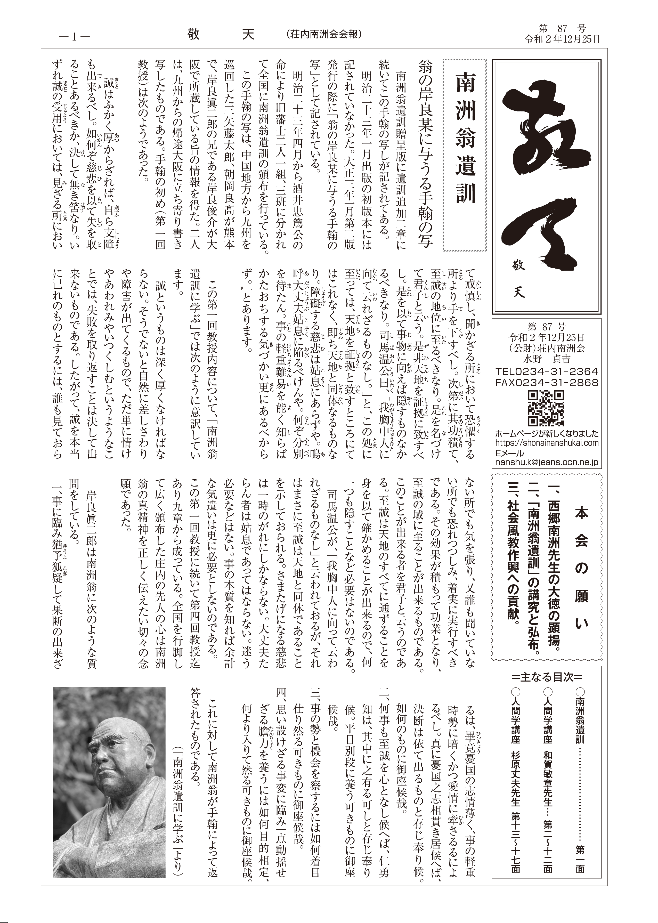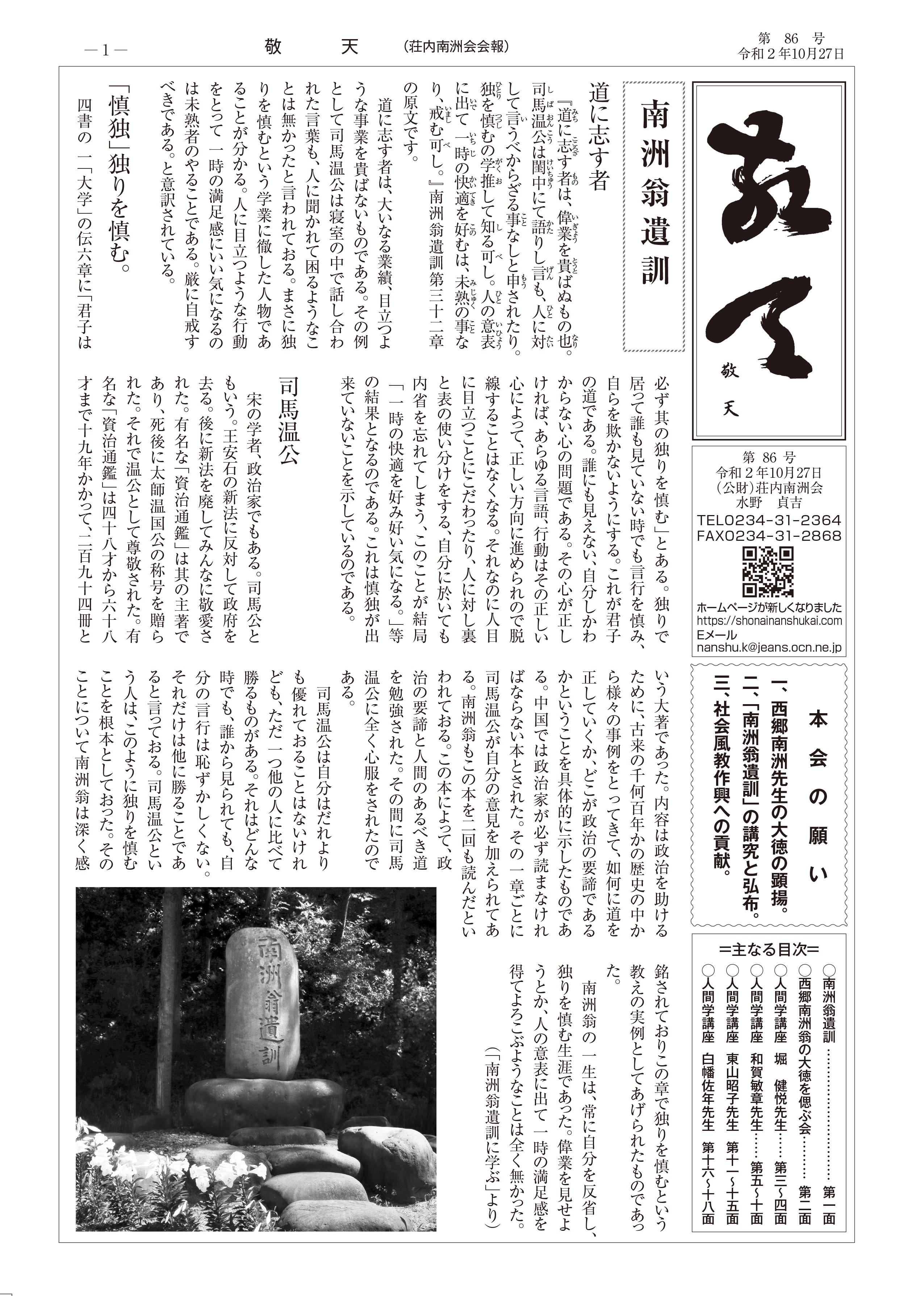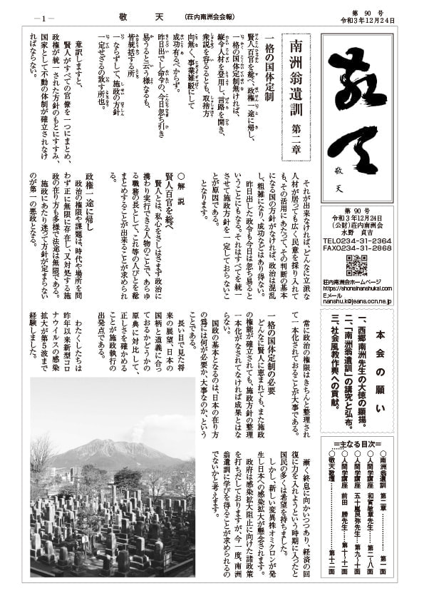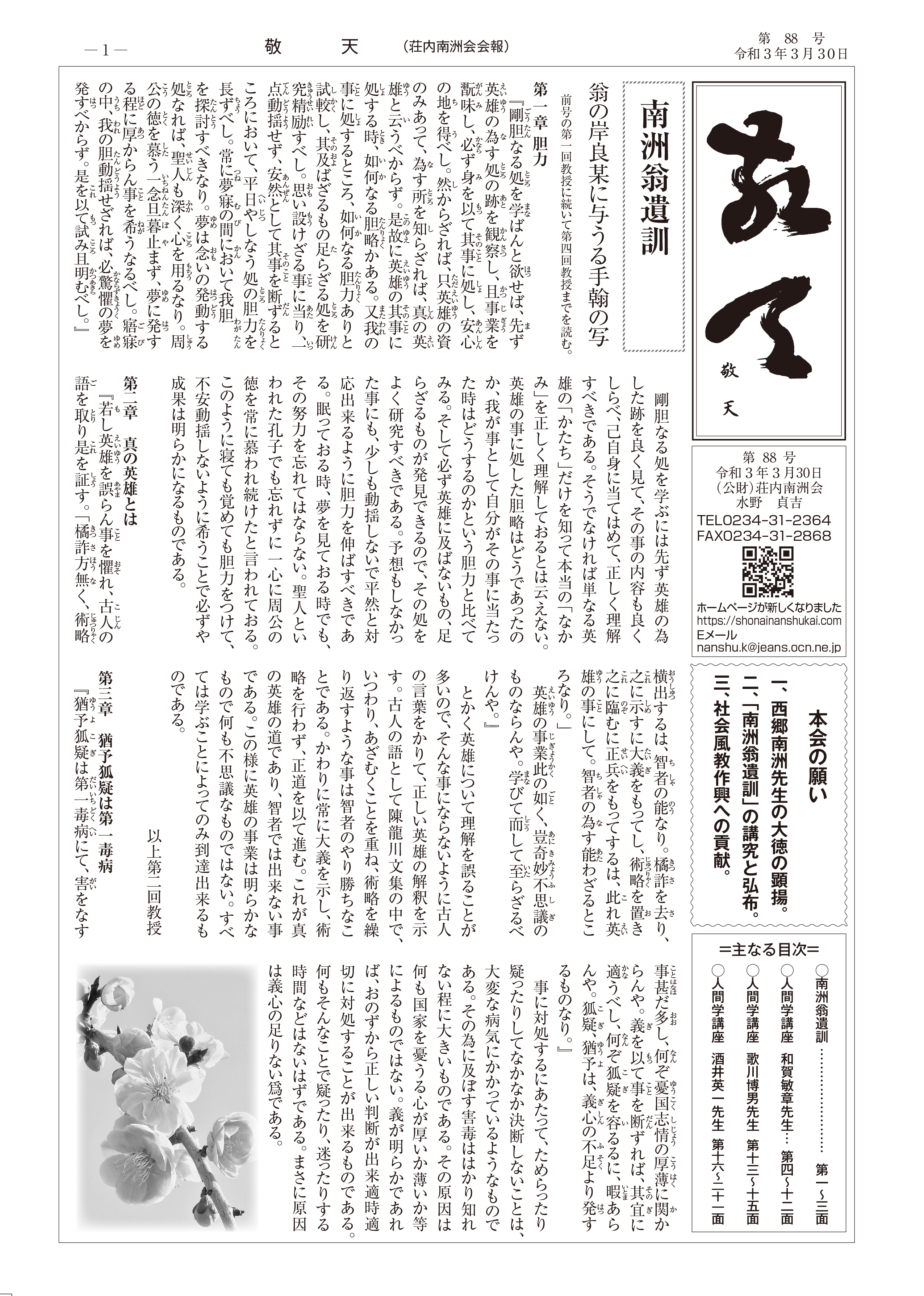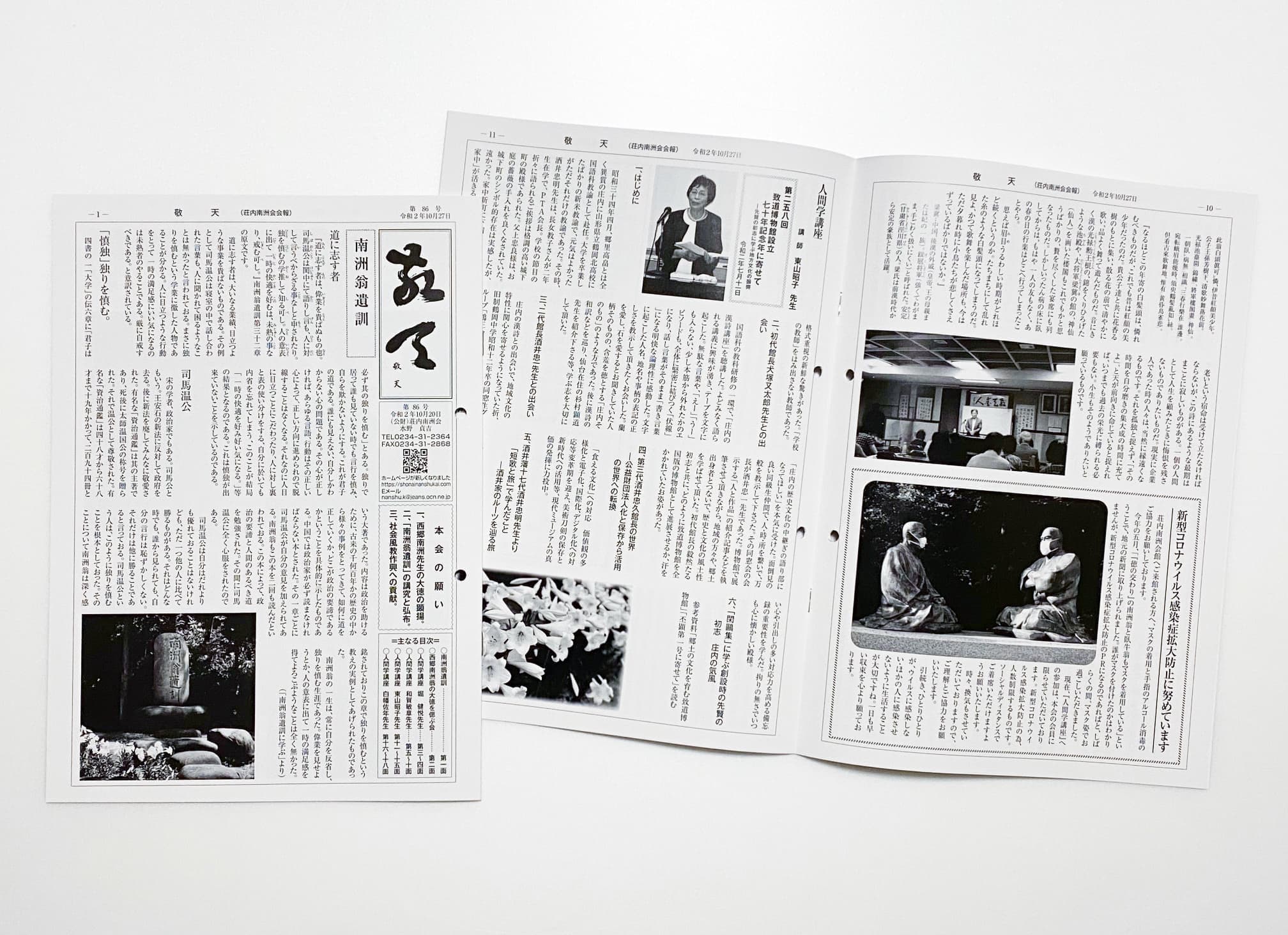 『敬天』第86号より、つやを抑えた紙に印刷し、読みやすくしました。中綴じ加工もはじめました。