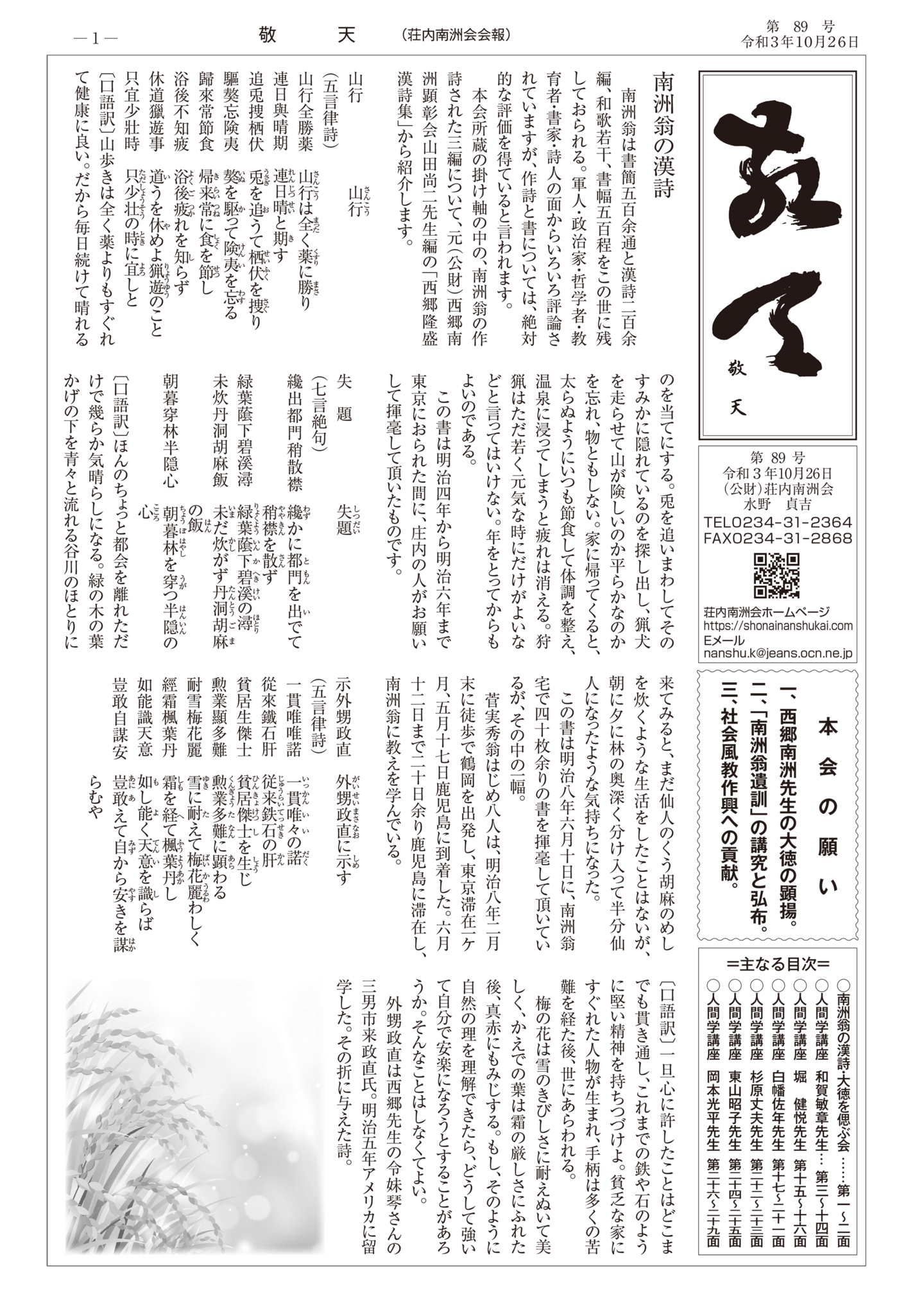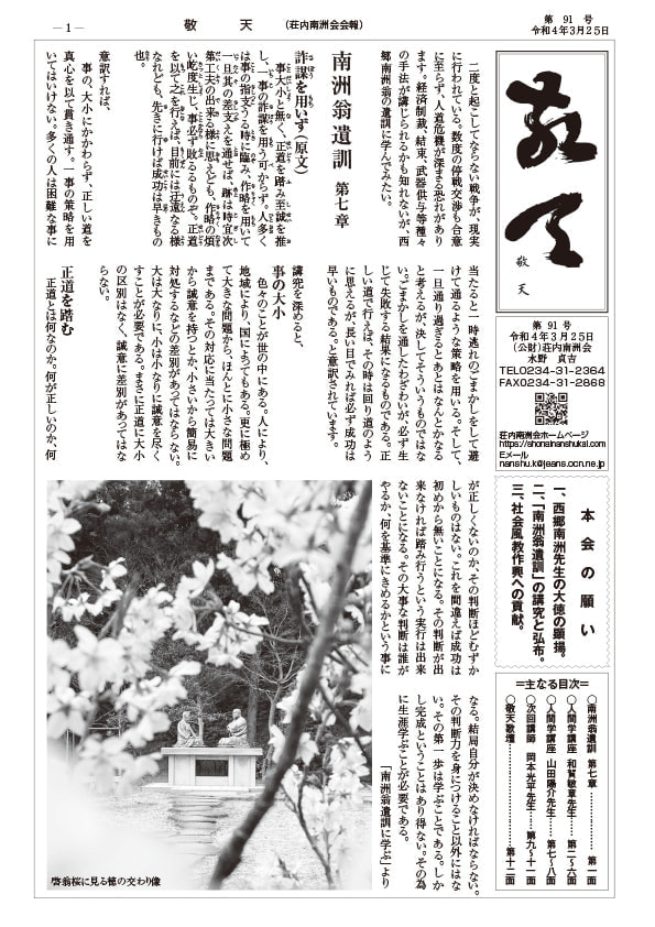 『敬天歌壇』も再開しましたので、多くの皆様からの投稿をお待ちしております。
